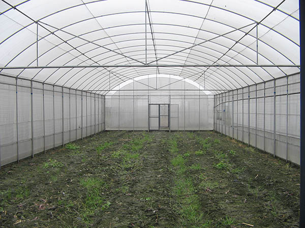 薄膜大棚主骨架采用國產(chǎn)熱鍍鋅鋼管及連接件,頂部采用尖弧形結(jié)構(gòu)增強抗雪載能力,框架結(jié)構(gòu)簡練堅固。其覆蓋材料可選用進口或國產(chǎn)長壽膜,有卡槽和包塑卡簧固定。兩側(cè)圍面可設置手動卷膜窗,通風口配置防蟲網(wǎng)。根據(jù)用戶需要可在端面配置通風系統(tǒng),室內(nèi)可配置微噴、滴灌施肥系統(tǒng)和外遮陽系統(tǒng)。該類溫棚具有結(jié)構(gòu)簡單、安裝方便、造價低廉等特點,屬經(jīng)濟型溫棚。適合于花卉、蔬菜、苗木的大面積種植栽培。