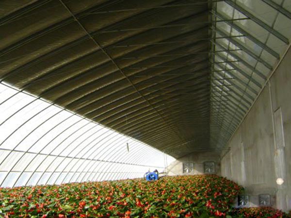 日光溫室采用熱鍍鋅鋼主體骨架鋼管制成拱弧形屋架,根據(jù)跨度不同有室內(nèi)無柱或只有單排柱結(jié)構(gòu),骨架桿件之間均采用螺栓連接。溫室每隔3米設(shè)一榀組合主骨架,每兩榀主骨架之間設(shè)兩榀副管拱架,主骨架與副管拱架之間設(shè)有橫向連接構(gòu)件。整體結(jié)構(gòu)堅固耐用,抗風(fēng)雪荷載能力強(qiáng)。覆蓋材料選用具有長壽命、防老化性能好、透光率高、防塵、防滴的復(fù)合功能膜及嚴(yán)寒冬天配合具有防水、防老化,高蓄熱保溫材料組成的復(fù)合保溫被覆蓋,其保溫性能優(yōu)于草簾,卷放省力省工,是目前日光溫室的選擇外保溫材料。